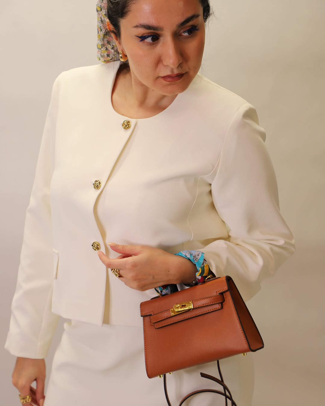 ست دو تیکه کت و دامن کرب کرم